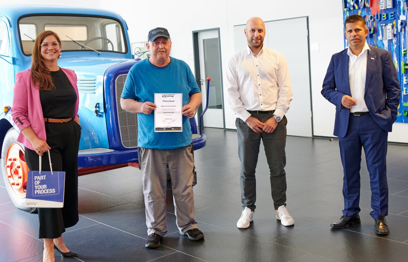 Im Laufe seiner langjährigen Tätigkeit für pfenning logistics gibt es kaum eine Ladung, die Erwin Heß nicht gefahren wäre. Als Lkw-Fahrer hat er das Unternehmen auf seinem Weg von der Spedition zum Full-Service-Kontraktlogistikdienstleister begleitet und leistet mit seiner Erfahrung einen wertvollen Beitrag. Im Rahmen einer Feier bedankte sich das Unternehmen bei ihm und blickte auf seine verdienstvolle Laufbahn zurück.
