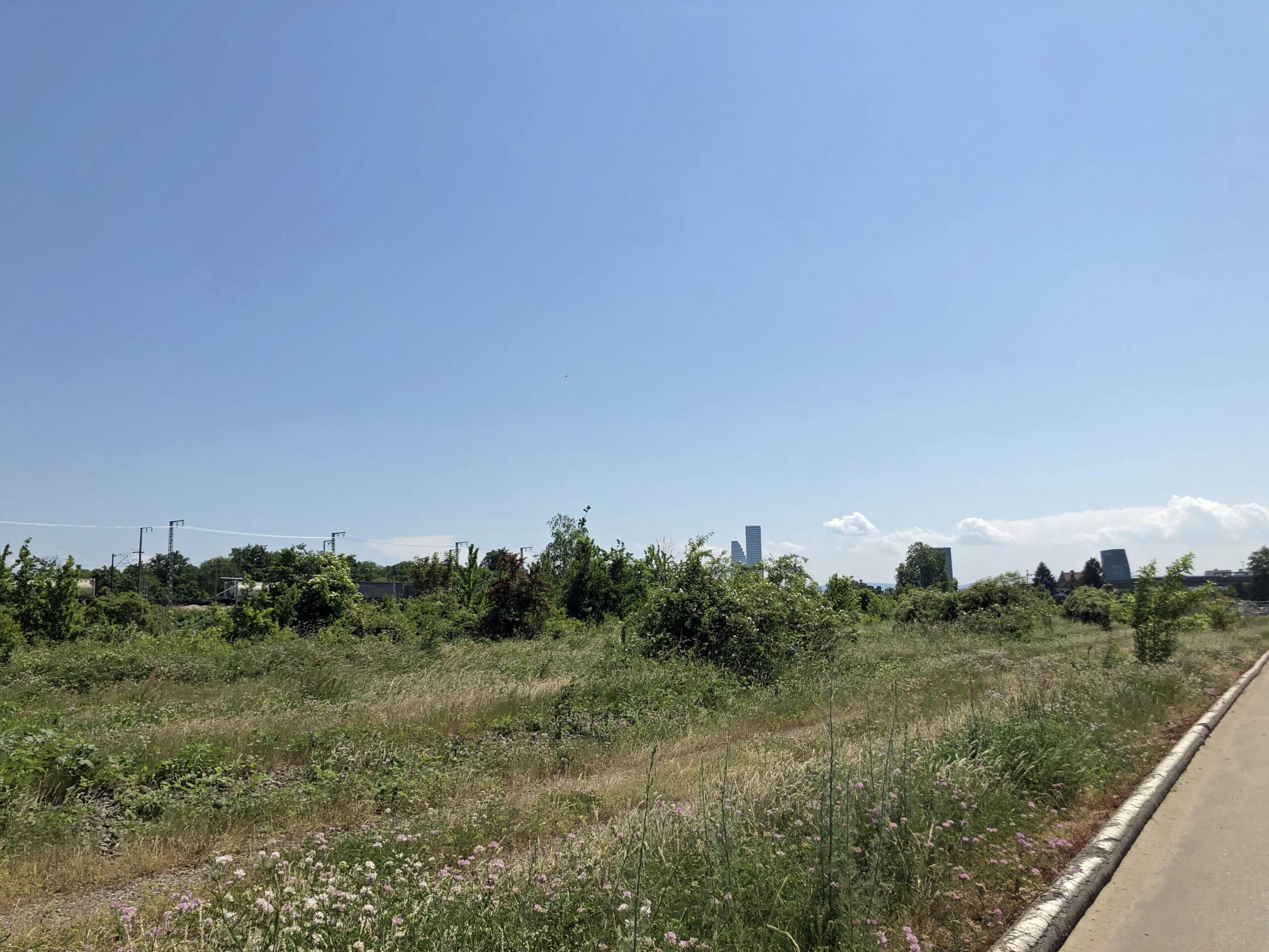 Ein grosses, weitgehend unberührtes, Naturgebiet soll dem Gateway Basel Nord weichen. Im Hintergrund die Skyline von Basel.