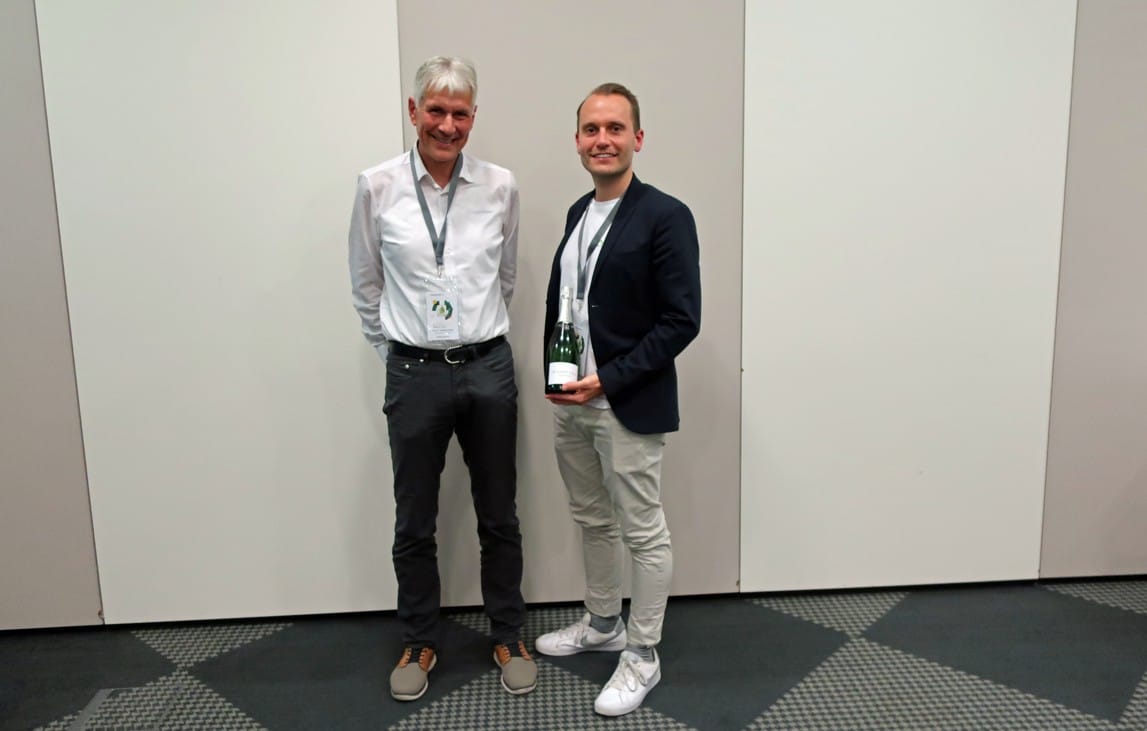 Kürzlich gehörte CO2OPT zu den Finalisten des Eco Performance Award 2022 und unterlag nur knapp dem späteren Sieger. Benjamin Bartsch empfängt die Ehrung von Jury-Präsident Prof. Dr. Wolfgang Stölzle (© Loginfo24)