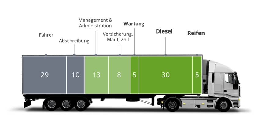 Der Reifen macht bei der Beschaffung des LKW nur 5 % aus, beeinflusst aber über 40 % der übrigen Kosten