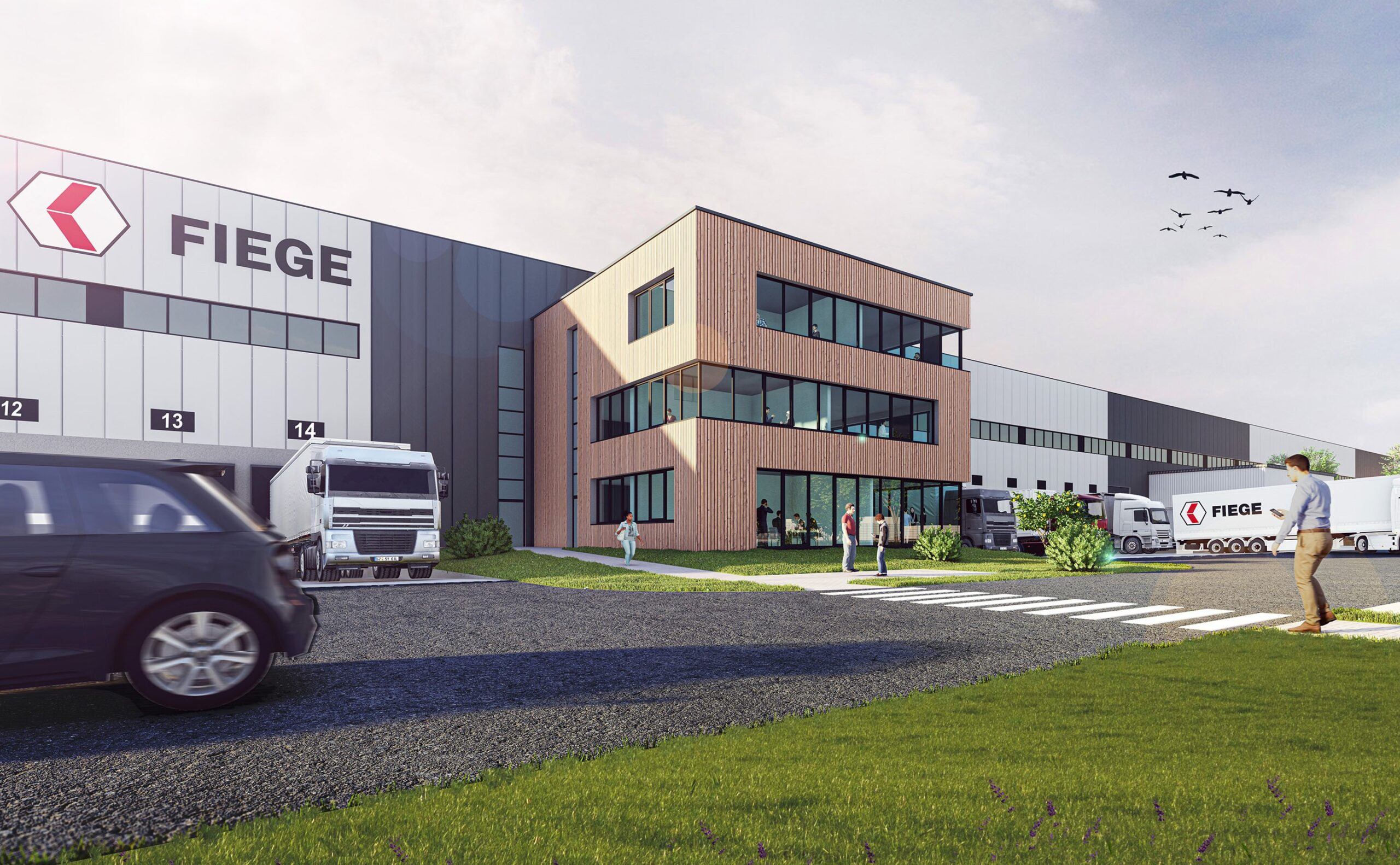 (Greven/Barleben) Insgesamt entstehen in Barleben 42.000 Quadratmeter Logistikfläche, verteilt auf vier Hallenschiffe, zwei Kühllager und zwei vorgelagerte Bürokomplexe. Die Fertigstellung des neuen Fiege-Standortes ist für Ende 2022 geplant. Realisiert wird das Bauprojekt vom Fiege-Geschäftsbereich Real Estate, dem Generalunternehmer Bremer und dem Architekturbüro Jürgen Schlake.
