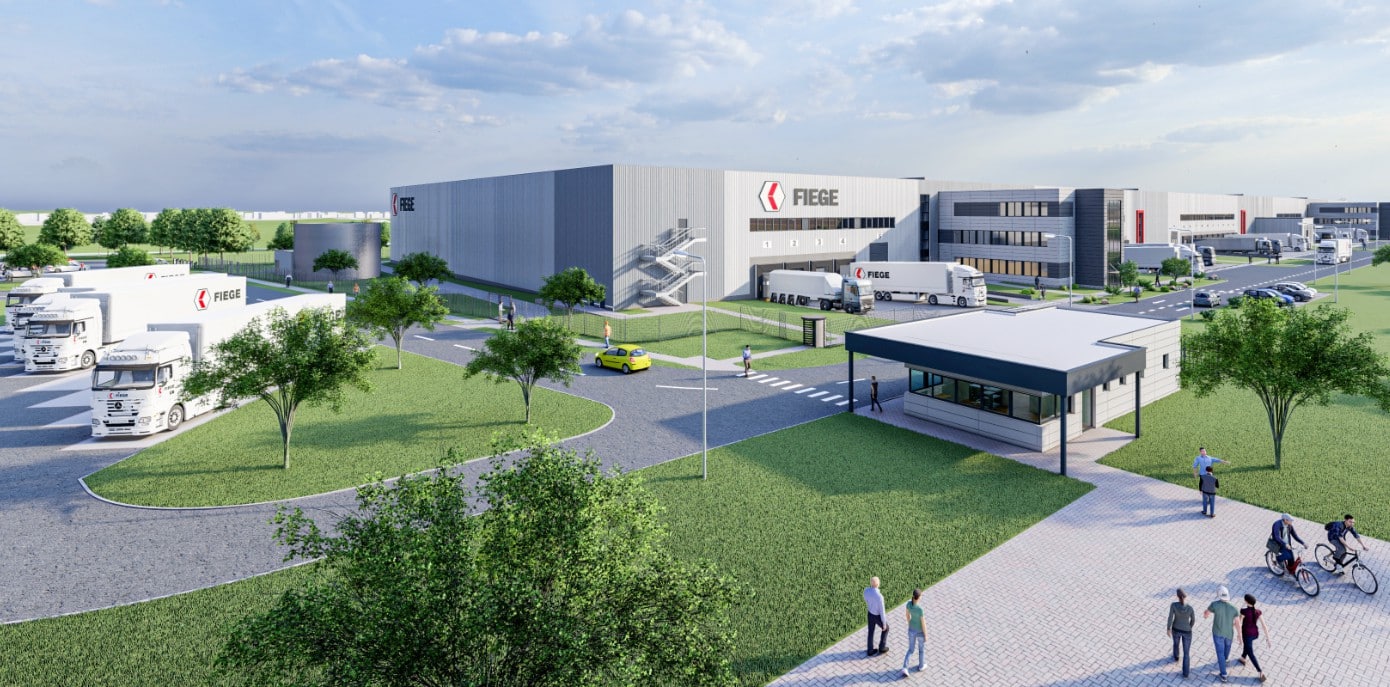 Der Neubau besteht aus vier größeren Einheiten und einer kleineren Einheit mit zwei vorgesetzten Bürobauten und einem Pförtnerhaus. Das Logistikzentrum ist nach DGNB zertifiziert, verfügt über eine Ladeinfrastruktur für Elektromobilität, hocheffiziente LED-Beleuchtung, übergreifende Gebäudeleittechnik und eine Photovoltaikanlage. Der erzeugte Strom kann von FIEGE als Betreiber direkt genutzt werden. In den Außenanlagen wurden 135 Bäume und gut 2.500 Sträucher zur Eingrünung der Fassade gepflanzt.