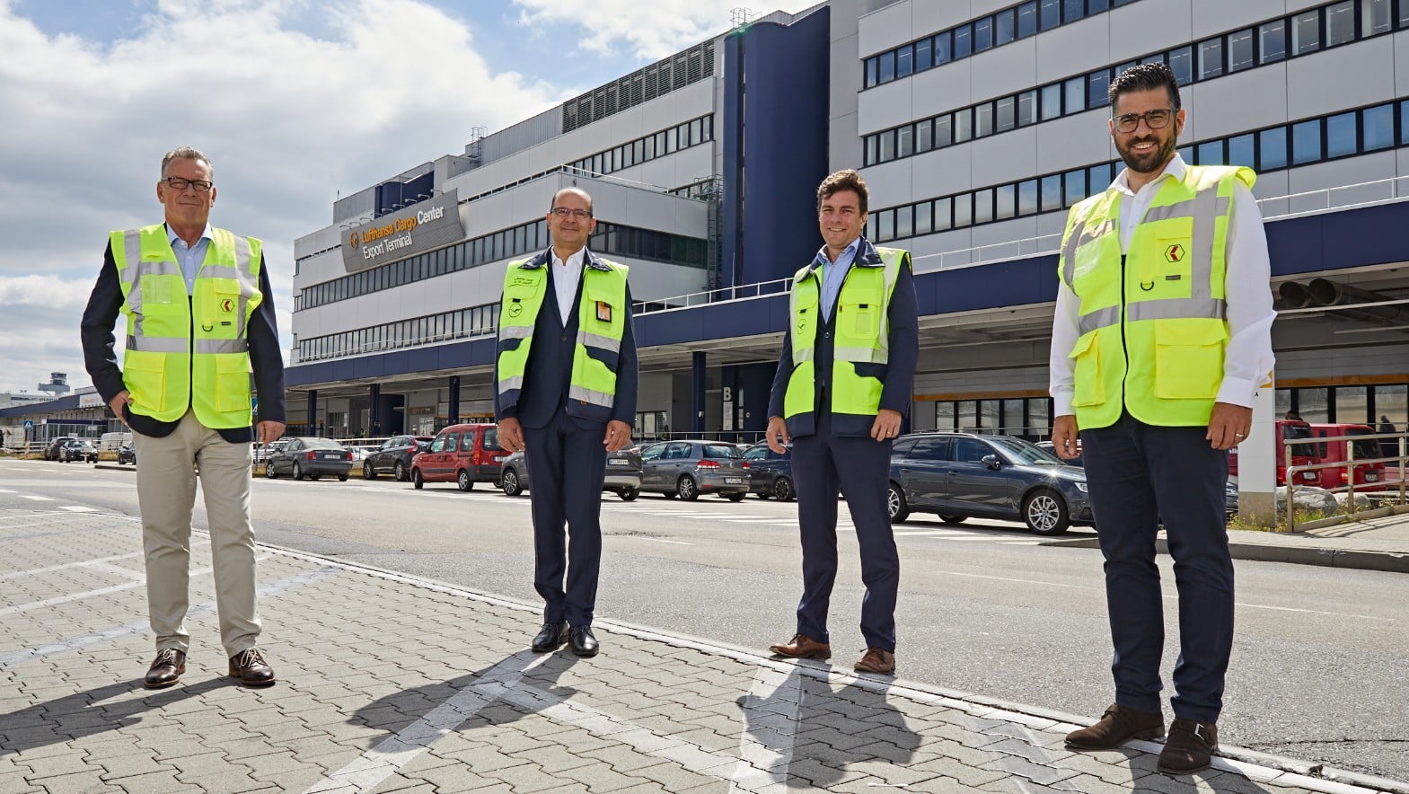 Bildlegende: v.l.n.r.: Felix Scherberich (CEO Fiege Air Cargo Logistics); Dr. Mohammad Ali Seiraffi (Lufthansa Cargo Vice President Handling Frankfurt), Gunnar Loehr (Lufthansa Cargo Senior Director Supply Management & Infrastructure); Benjamin Looser (FACL Managing Director)
