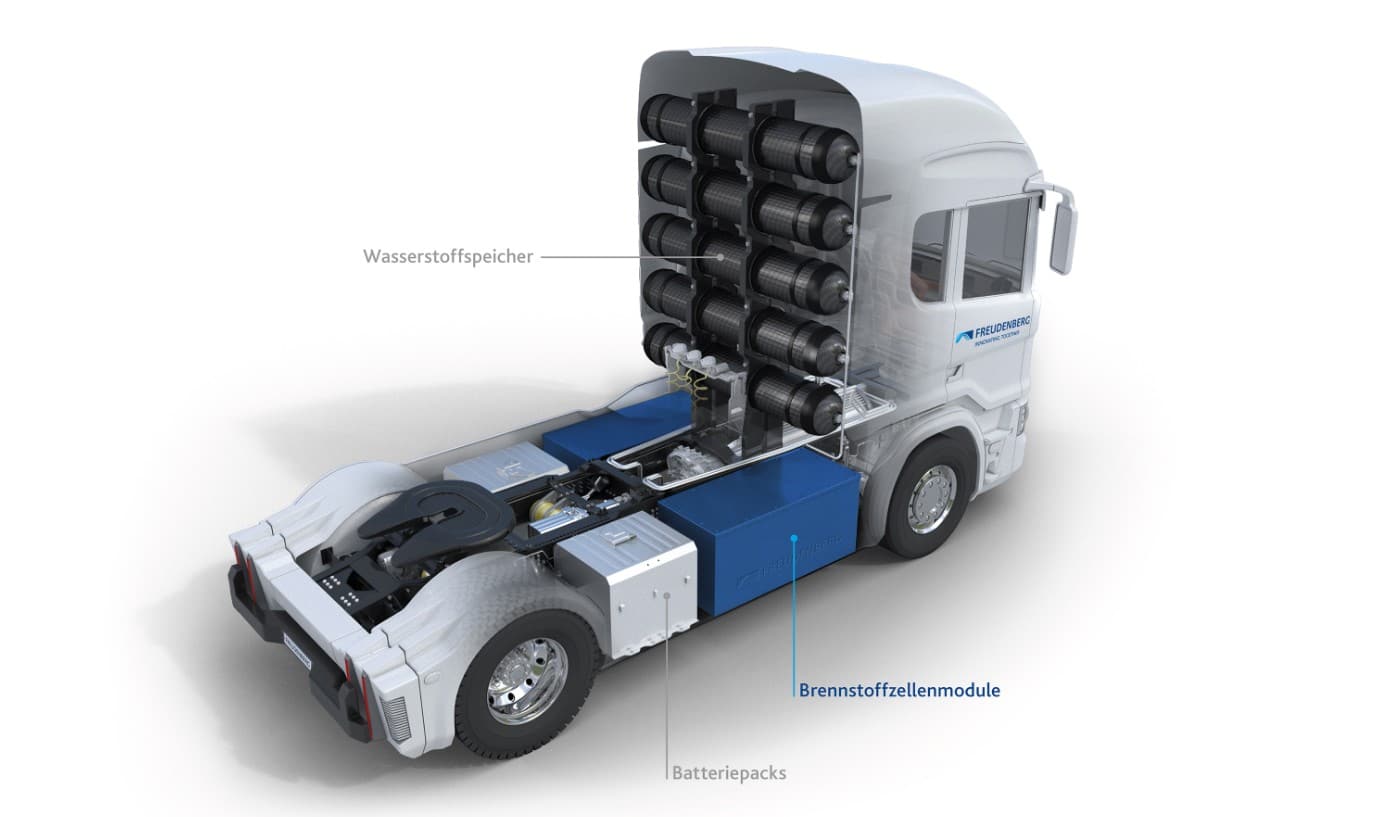 (Weinheim/Bergstrasse) Freudenberg Sealing Technologies startet die Entwicklung eines speziellen Brennstoffzellensystems für Schwerlastkraftwagen. Dabei kooperiert das Unternehmen mit der Quantron AG, einem Spezialisten auf dem Gebiet der Nutzfahrzeug-Umrüstung. Innerhalb kürzester Zeit sollen die Entwicklungsergebnisse auf der Straße im realen Betrieb getestet werden. Das Projekt wird gefördert durch das Energieforschungsprogramm vom Bayerischen Staatsministerium für Wirtschaft, Landesentwicklung und Energie.