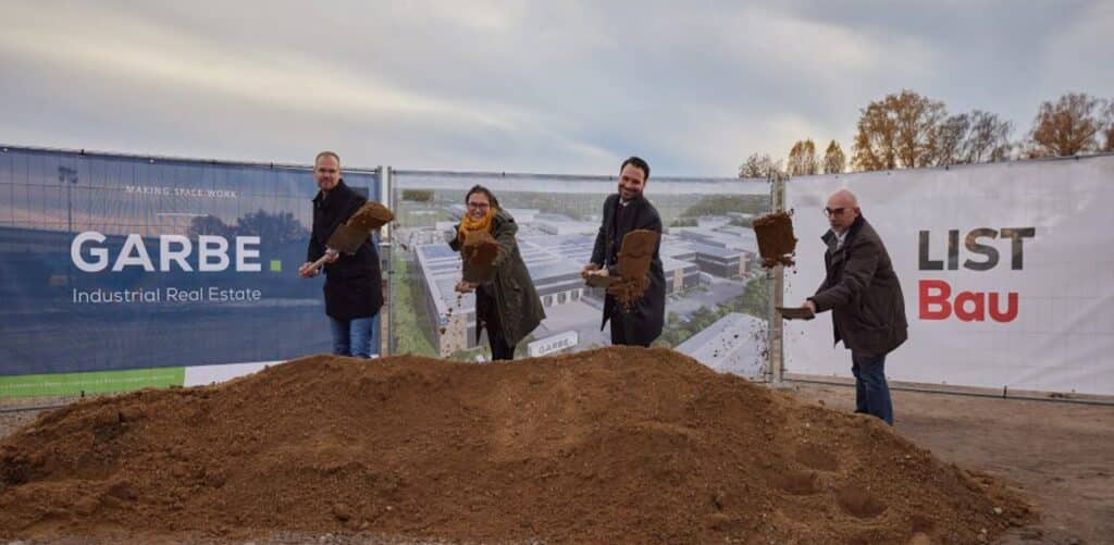 (Hamburg/Langenhagen) Der erste Spatenstich ist gesetzt. Mit einem symbolischen Akt haben jetzt die Bauarbeiten für einen Gewerbepark begonnen, den die Garbe Industrial Real Estate GmbH in Hannover-Langenhagen entwickelt. In unmittelbarer Nähe zum internationalen Flughafen entsteht eine hochmoderne Immobilie mit einer Hallenfläche von insgesamt 15.500 Quadratmetern. Die Fertigstellung ist für Mai 2022 geplant. Das Investitionsvolumen beläuft sich auf 18 Millionen Euro.
