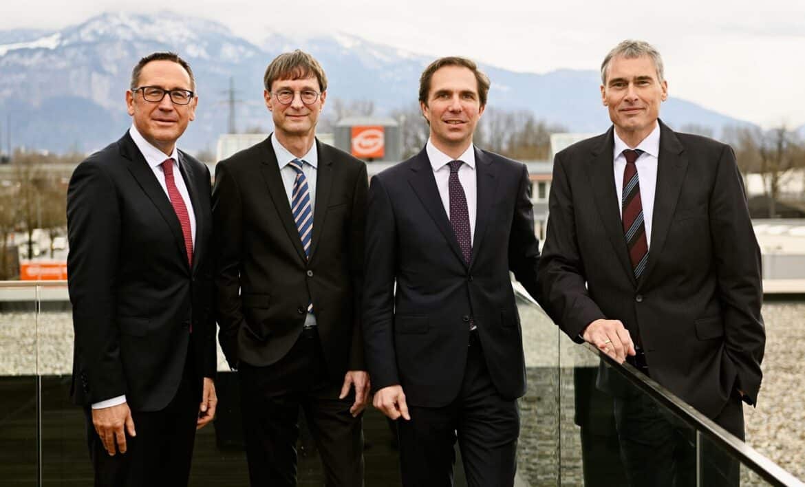 Fotos: © Gebrüder Weiss/Gnaudschun / Bildlegende: Die Geschäftsleitung von Gebrüder Weiss (v.l.): Jürgen Bauer, Peter Kloiber, Wolfram Senger-Weiss (Vorsitzender) und Lothar Thoma