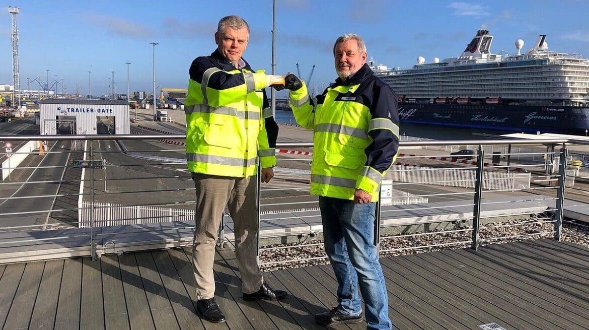 Uwe Bäßgen, langjähriger Abteilungsleiter für Hafenlogistik bei ROSTOCK PORT, verabschiedet sich im Juni 2021 in den Ruhestand und übergab am 1. März den Staffelstab an seinen Nachfolger, Götz Strahl, der seit dem Jahr 2016 als Vertriebsleiter beim Betreiber des Rostocker Überseehafens angestellt ist.