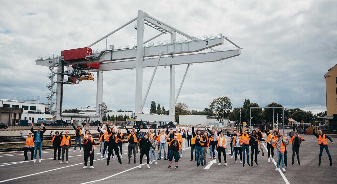 Hellmann begrüsst die neuen Ausbildungskräfte unter der Containerbrücke (© Hellmann)
