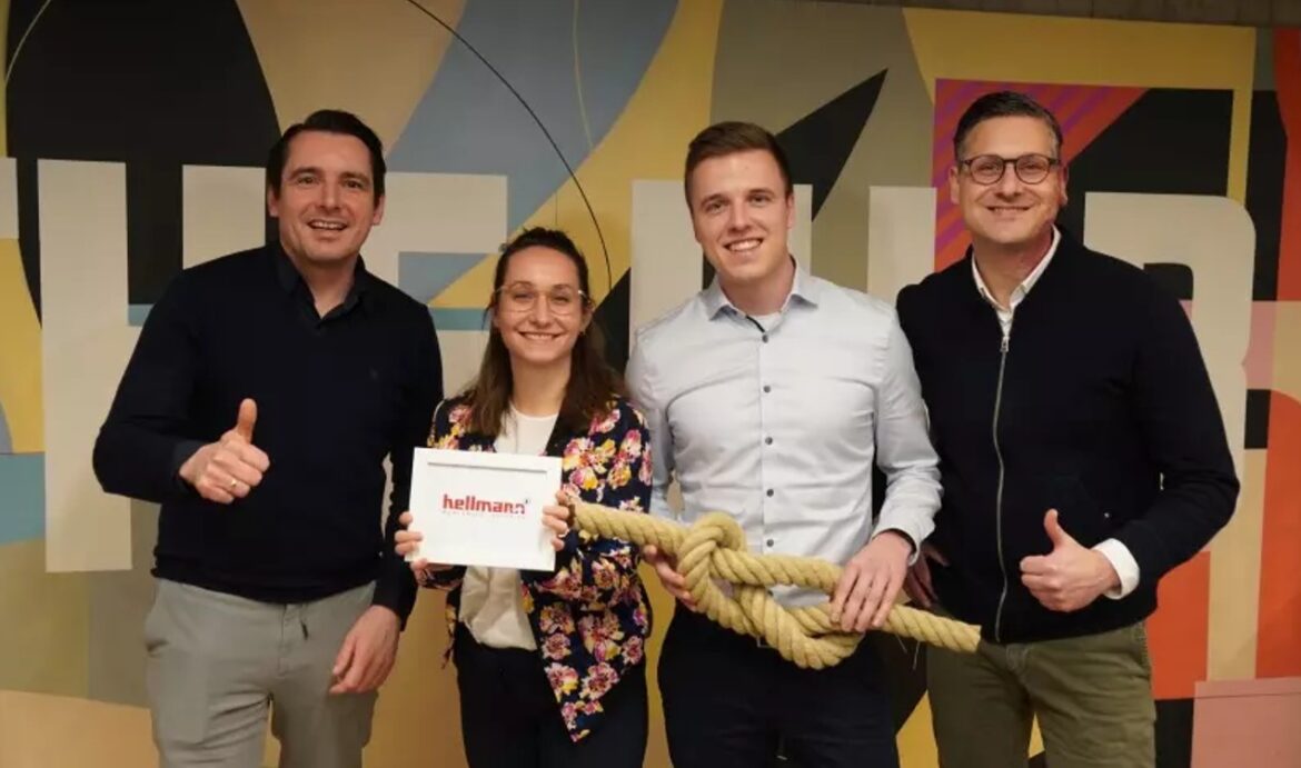 Foto: © Hellmann / Bildlegende: (v.l.n.r.): Stefan Borggreve (Hellmann), Emily Roberts (DHLH), Dominik Schindler (Hellmann), Erik Petruschke (DHLH)