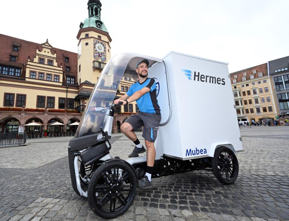 Hermes setzt seine Tests im Lastenrad-Bereich in Leipzig fort: Im Juli prüfte der Paketdienstleister den Prototypen eCargo des Herstellers Mubea im Regelbetrieb. Das eigens für die KEP-Branche entwickelte Cargofahrzeug des Automobilzulieferers wurde bei der Zustellung in den Stadtteilen Mockau und Eutritzsch eingesetzt und transportierte im Schnitt knapp 70 Sendungen pro Tag. Einmal mehr diente die Leipziger Innenstadt als Lastenrad-Testgebiet.