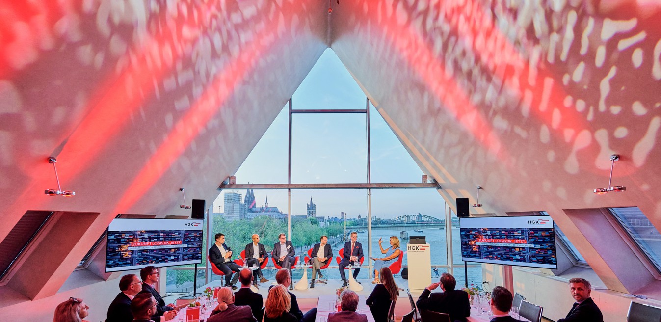 Im Interview mit Moderatorin Gesa Eberl gab Markus Krämer Auskunft über die Hintergründe und strategische Ausrichtung der neuen Einheit. In der anschließenden Podiumsrunde diskutierte er mit Andreas Feicht, Geschäftsführer der Stadtwerke Köln GmbH, Achim Boner, Geschäftsführer Thyssen Krupp Materials Trading, Marc-Oliver Nandy, Director Global Supply Chain von Mercedes Benz, und Dr. Jan Zeese, CAO HGK Logistics & Intermodal, über die Bedeutung funktionierender Lieferketten für die Unternehmen. Nur wer in der Lage sei, die aktuellen Anforderungen zu verstehen und Supply Chaines weiter zu entwickeln, sei erfolgreich und zukunftsfähig, war sich die Runde einig. Was nicht nur positive Effekte für die Unternehmen, sondern auch für die gesamte Gesellschaft erzeuge: Jeder Liter Diesel, der durch effektive Planung weniger verbraucht wird, spart Geld und schont die Umwelt. Die Wirtschaftsvertreter betonten, dass sie auf starke und belastbare Verbindungen zur Logistik angewiesen sind: „Kompetente Partner geben den Kunden Sicherheit.“ Ein Werksstillstand aufgrund von Lieferengpässen könne schließlich zu Millionenverlusten führen. Und da sei es egal, ob die Kette „auf dem Weg nach Siegen oder Sydney“ reiße. Umso bedeutender ist, regional, national und international verlässlich aufgestellt zu sein. „Logistik kennt keine Stadtgrenzen“, fasste Markus Krämer abschließend zusammen.
