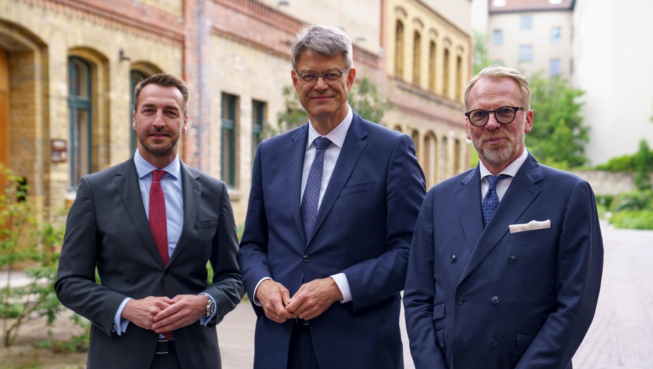 Einsatz für die Modernisierung des Systems Wasserstraße (v.l.n.r.): Steffen Bauer, CEO von HGK Shipping, Dr. Patrick Schnieder, Bundesminister für Verkehr, und Eric Oehlmann, Leiter der Generaldirektion Wasserstraßen und Schifffahrt  © Stella Scheibenzuber | HGK Shipping