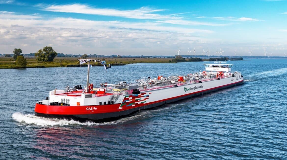 Neuer Meilenstein für eine nachhaltige Binnenschifffahrt: Mit der Taufe des Gastankschiffs „GAS 96“ letzte Woche in Rotterdam hat HGK Shipping ein weiteres zukunftsweisendes Schiff offiziell in Dienst gestellt. Für Europas größtes Binnenschifffahrtsunternehmen ist dies der dritte Gastanker, der eine extreme Tiefgangoptimierung mit einem diesel-elektrischen „Future-Fuel-Ready“-Antrieb vereint.