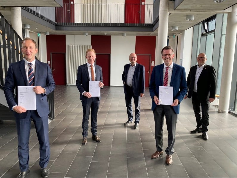 (Brunsbüttel) Am 6. Oktober 2020 unterzeichneten Jens Hansen, Vorstandsmitglied der Hamburger Hafen und Logistik AG (HHLA), Thomas Lütje, HHLA-Vertriebsdirektor, Frank Schnabel, Geschäftsführer Brunsbüttel Ports GmbH / SCHRAMM group, und Friedrich A. Kruse jun., Geschäftsführung Friedrich A. Kruse jun. Unternehmensgruppe, im Beisein von Brunsbüttels Bürgermeister Martin Schmedtje einen Kooperationsvertrag über eine strategische Partnerschaft zur Förderung der Binnenschifffahrt auf der Unterelbe. Ziel der Kooperation ist es, die Binnenschifffahrt und das Verkehrssystem Wasserstraße weiter zu fördern, um mehr Güterverkehre auf das Wasser zu verlagern.