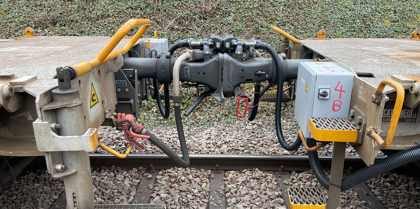 Es rumpelt und knallt. Lokführer Alexander Gyger hat den Triebwagen des Pilotzugs mithilfe einer Fernsteuerung in Bewegung gesetzt und langsam auf zwei losgekoppelte Güterwagen auffahren lassen. Ein kurzes Zischen, Gerd Dietrich wirft einen Blick auf die Kupplung. Perfekt. Das pneumatische Bremssystem hat sich automatisch verbunden, auch die elektronische Datenübertragung funktioniert. Bei jedem der insgesamt sechs Wagen wird das Manöver wiederholt. Dann wird es Zeit aufzubrechen, denn der Zug muss noch die Testfahrten auf längeren Kurven absolvieren. Der Fahrplan in der Schweiz ist dicht, die Gleise sind nur für ein kurzes Zeitfenster verfügbar.