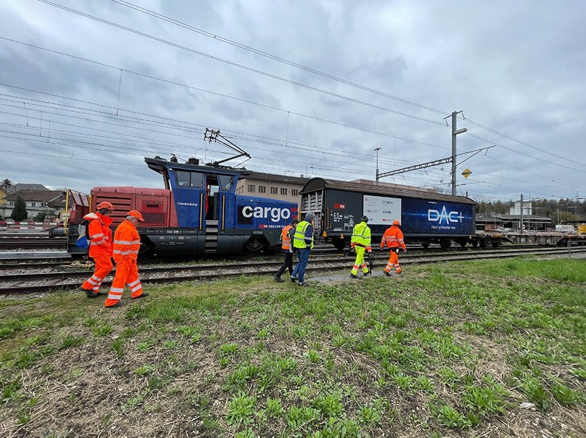 (Luzern/Wildegg) Montagmorgen im Kanton Aargau. Die Gäste im Bahnhofbuffet von Wildegg ahnen nicht, dass vor dem Fenster soeben ein futuristischer Zug vorbeifährt. Denn auf den ersten Blick ist es ein unauffälliger Güterzug. Man sieht ihm nicht an, dass er bei Fachleuten europaweit Interesse weckt. Auf dem ersten Wagen prangt gross das Logo «DAC+». Die Zugskomposition rollt langsam auf ein Abstellgleis, direkt neben das imposante Industrieareal des Baustoffherstellers Jura Cement. Hier will ein internationales Forschungsteam mit dem Zug einige Testmanöver durchführen, denn die sechs Wagen sind mit einem neuen Kupplungssystem ausgerüstet, das dereinst den Güterzugverkehr revolutionieren könnte.