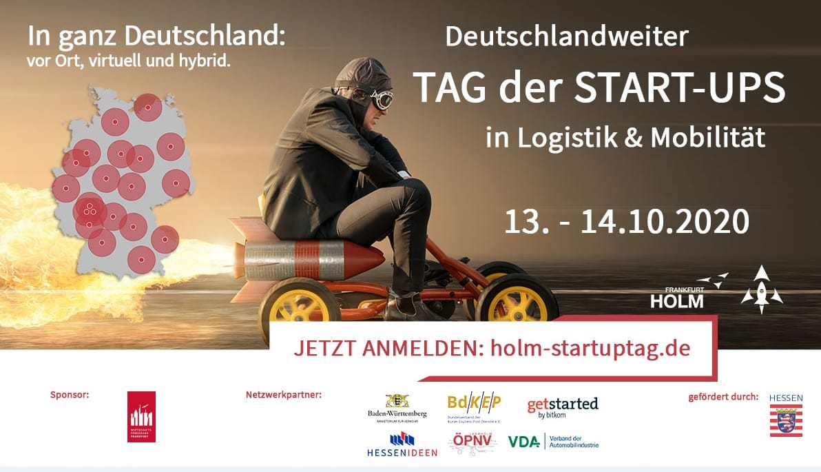 Der HOLM Start-up Tag passt sich der Situation rund um die Coronakrise an und nennt sich "Deutschlandweiter Tag der Start-ups in Logistik und Mobilität". Die Veranstaltung findet am 13. und 14. Oktober 2020 mehrheitlich virtuell statt. Viele tolle Sessions warten auf die Teilnehmer.