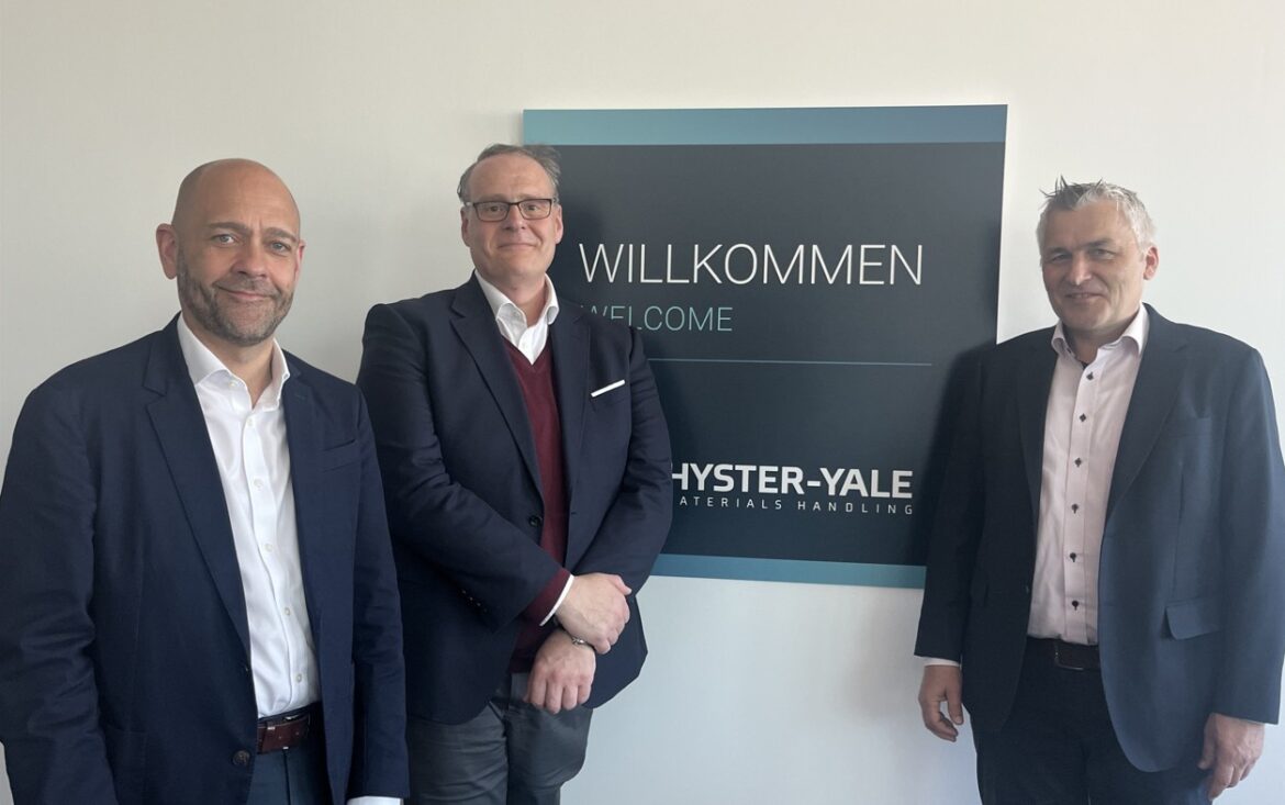 Foto: © Hyster-Yale Deutschland / Bildlegende (v.l.n.r.): Vince Cooke, VP Sales – EMEA and Global Major Accounts; Stewart D. Murdoch, Managing Director – EMEA and Claus Herting, Area Business Manager Central and Eastern Europe, Turkey