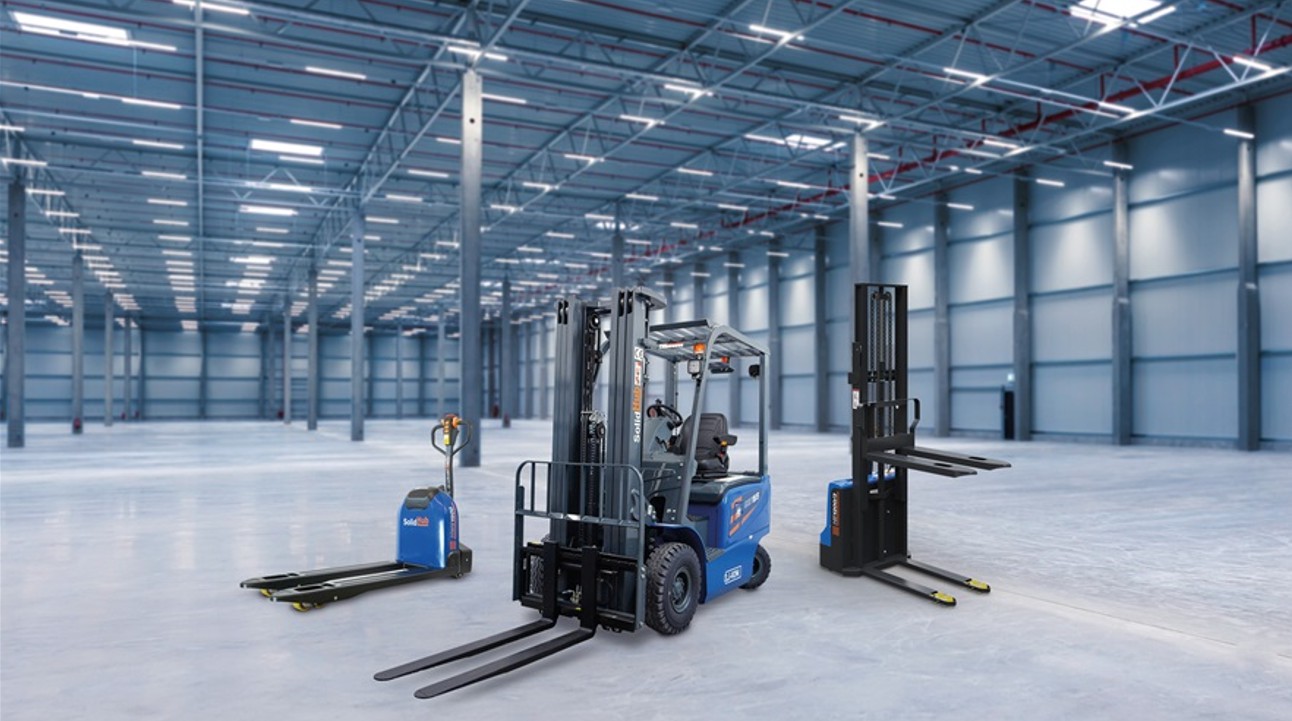 Um diverse Lageraufgaben zu bewältigen sowie unterschiedliche, auf die jeweilige Ware ausgerichtete Lagerhaltungssysteme, wie beispielsweise Hochregallager oder Bodenlager, zu bedienen, erfordert es in der Regel den Einsatz mehrerer Flurförderzeuge. Insbesondere für kleine Betriebe kann dies zu einem entscheidenden Kosten- und Platzfaktor werden. „Eine kostengünstige und platzsparende Lösung stellt der Elektrostapler HE1200/3 von SolidHub dar, da er die Eigenschaften eines Gabelstaplers mit denen eines Hubwagens kombiniert. Zudem kann er ohne Starkstromanschluss an jeder normalen 230-V-Steckdose geladen werden“, so Effner. „Nicht nur für kleine Unternehmen wie Werkstätten oder im Einzelhandel erleichtert er mit der maximalen Belastung von 1.200 Kilogramm und einer Hubhöhe von 86 bis 3.000 Millimetern alle gängigen Transport- und Staplerarbeiten. Dank des kleinen Wenderadius lässt er sich auch besonders flexibel in kleinen Lager- und Produktionsstätten einsetzen.“