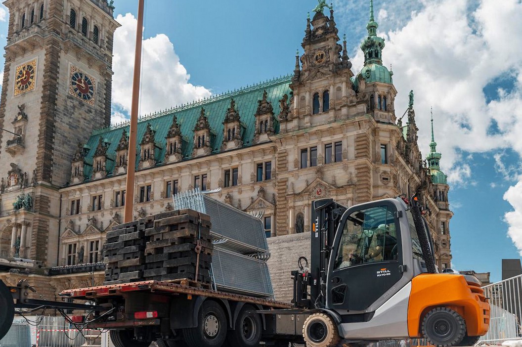 Dank der langjährigen Erfahrung von STILL im Mietgeschäft und wiederkehrender Anwendungsfälle können diese oftmals innerhalb kürzester Zeit umgesetzt werden. Beispielsweise hat STILL als Logistikpartner des Suzuki World Triathlon Hamburg im vergangenen Sommer elf Stapler nicht nur für den Auf- und Abbau zur Verfügung gestellt, sondern auch als robuste und aufmerksamkeitsstarke Absperrungen an viel frequentierten Streckenabschnitten. Dafür hat STILL die Fahrzeuge eigens mit einer speziellen Bereifung für wechselnde und anspruchsvolle Bodenbeläge ausgestattet und so ihren Einsatz sowohl auf weichem Untergrund in Parks oder auf Grünstreifen als auch auf empfindlichen Straßenoberflächen, wie der des Hamburger Rathausmarkts, ermöglicht.