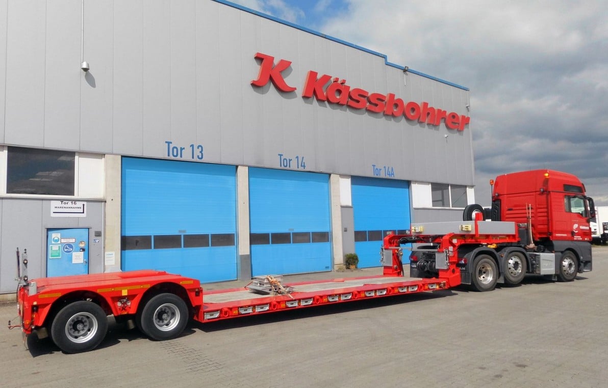 Der Aufliegerhersteller Kässbohrer aus dem bayerischen Achstetten beliefert die Rüdebusch Baustoffe in Braunschweig mit einem Tiefbett-Spezialaufliefer. Das gelieferte Kässbohrer Tiefbett 2 Achsen hat mit einer Bodenfreiheit von nur 100 mm die niedrigste Ladehöhe auf dem Markt und nimmt im Schwerlastverkehr die maximale Höhe an Ladung auf.