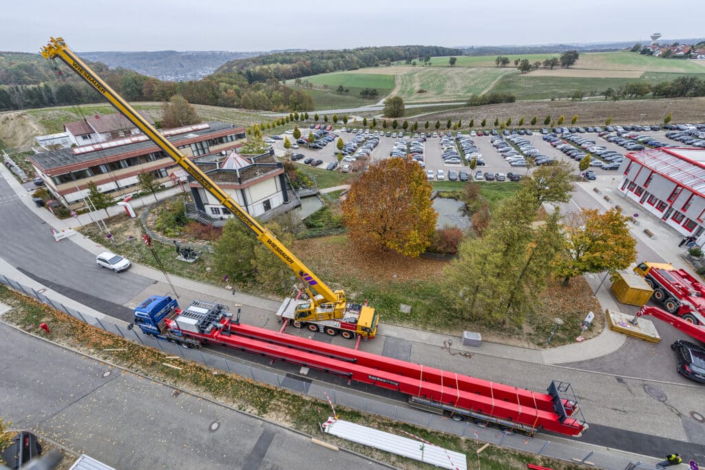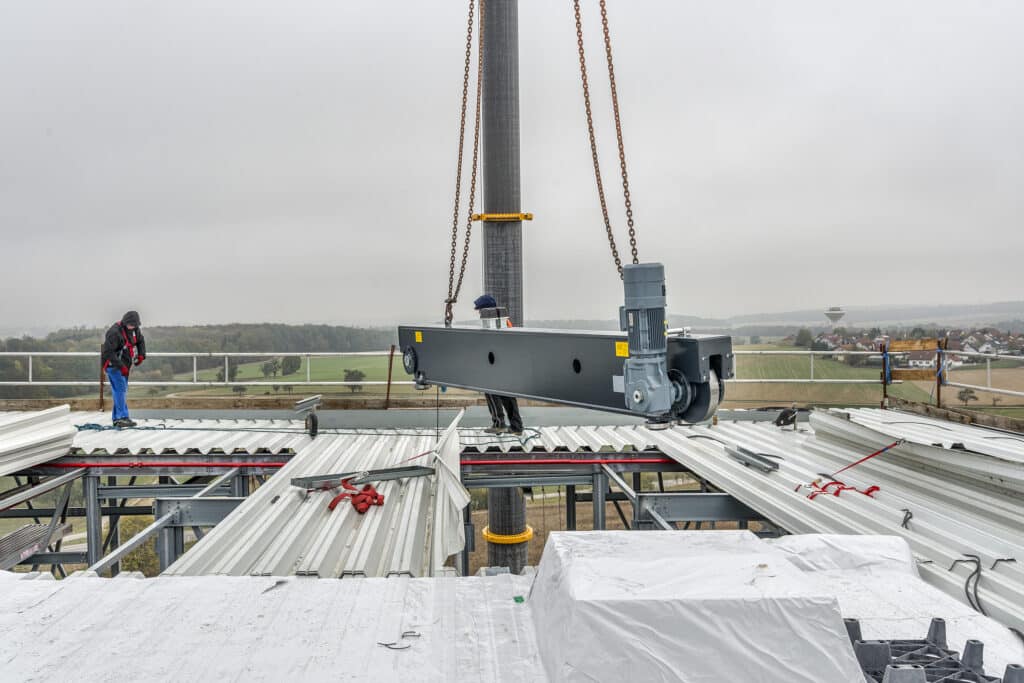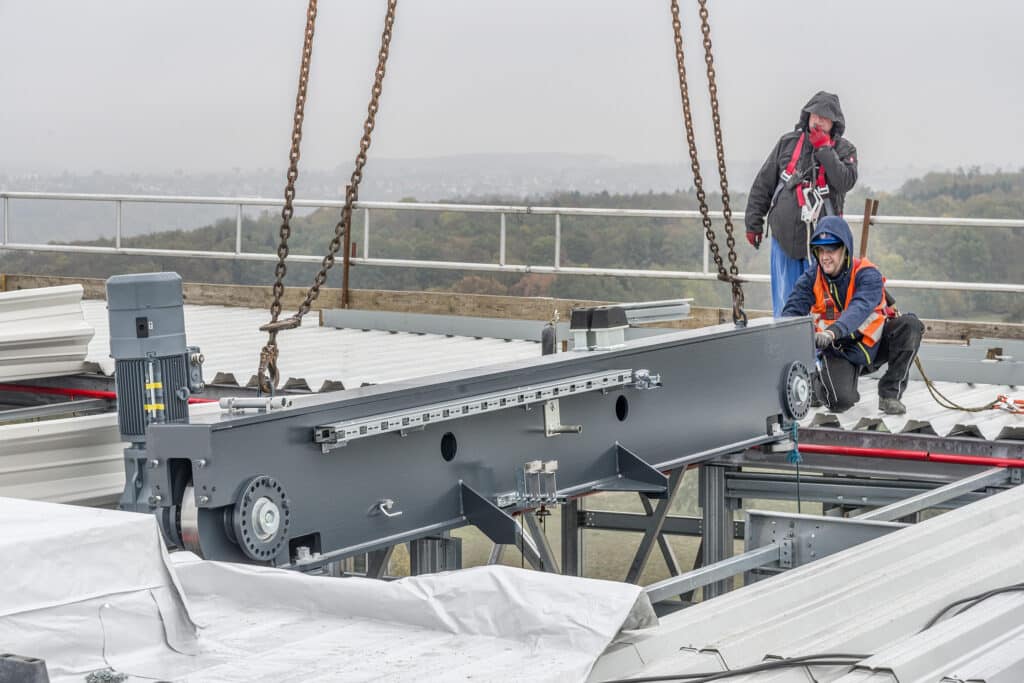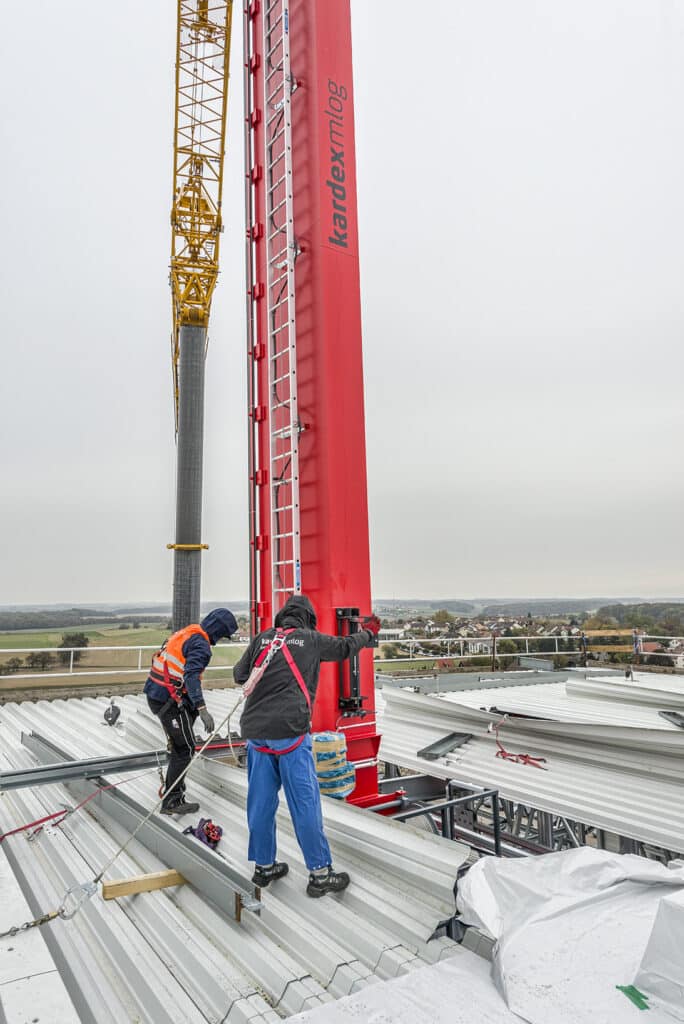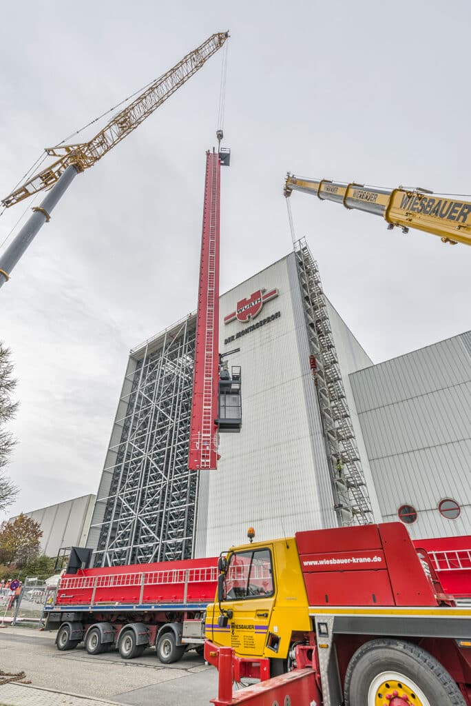 Kardex Mlog baute, lieferte und montierte 4 Regalbediengeräte (RBG) vom Typ MSingle B 1200 mit Gangausrüstung und Automatiksteuerung, die in die bestehende Anlage auf 3 Stockwerken integriert wurde. Die Einsäulen-RBGs wurden am 23. Oktober 2018 über eine Dachöffnung in das Lager eingebracht. Die Geräte verfügen über einen Fahrerstand, sind 35,5 m hoch und für eine Traglast von bis zu 2,4 to ausgelegt. Mit einer Fahrgeschwindigkeit von bis zu 180 m/min und einer Hubgeschwindigkeit von bis zu 70 m/min können sie sich innerhalb der 70 m langen Gassen schnell bewegen.