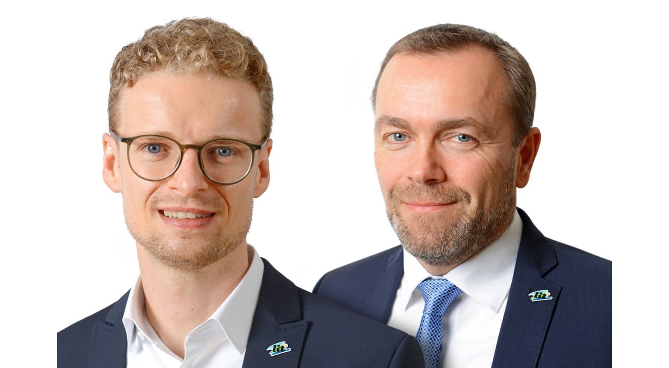 Foto: © L.I.T. / Bildlegende: Klaas Lange (links) wurde zum Geschäftsführer der neu gegründeten L.I.T. Solutions GmbH berufen, mit dem Geschäftsführer der L.I.T. Speditions GmbH, Simeon Breuer (rechts)