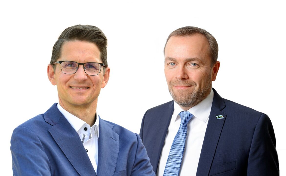 Foto: © Frank Bierstedt/L.I.T. / Bildlegende: Simeon Breuer, Vorstandsmitglieder der L.I.T. AG und Geschäftsführer der L.I.T. Speditions GmbH, (rechts) sowie Martin Möhrmann, Geschäftsführer der Gübau Gruppe, (links)