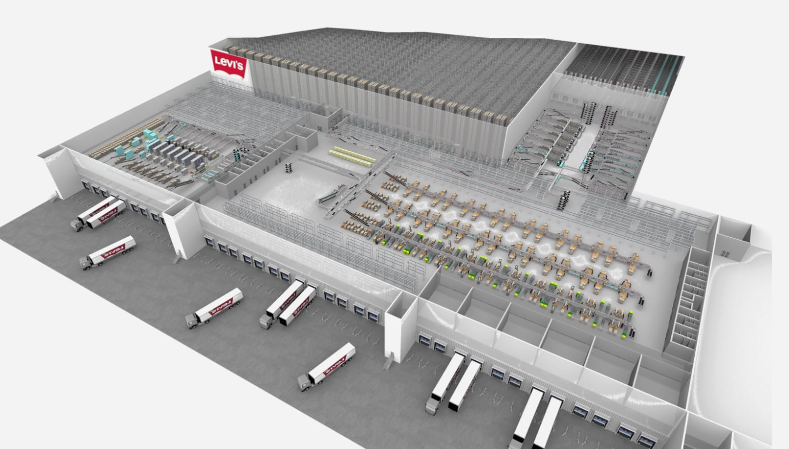 Auf einer Fläche von 155.000 m² errichtet Levi Strauss & Co. In Wulfen (Dorsten/Münsterland) eine der größten Logistikdrehscheiben Europas für Fashionartikel und Accessoires. Der Denim-Leader führt seine Logistikprozesse damit an einem zentralen Standort zusammen. TGW liefert bis November 2023 das hochautomatisierte Intralogistik-System für den Omni-Channel Betrieb.