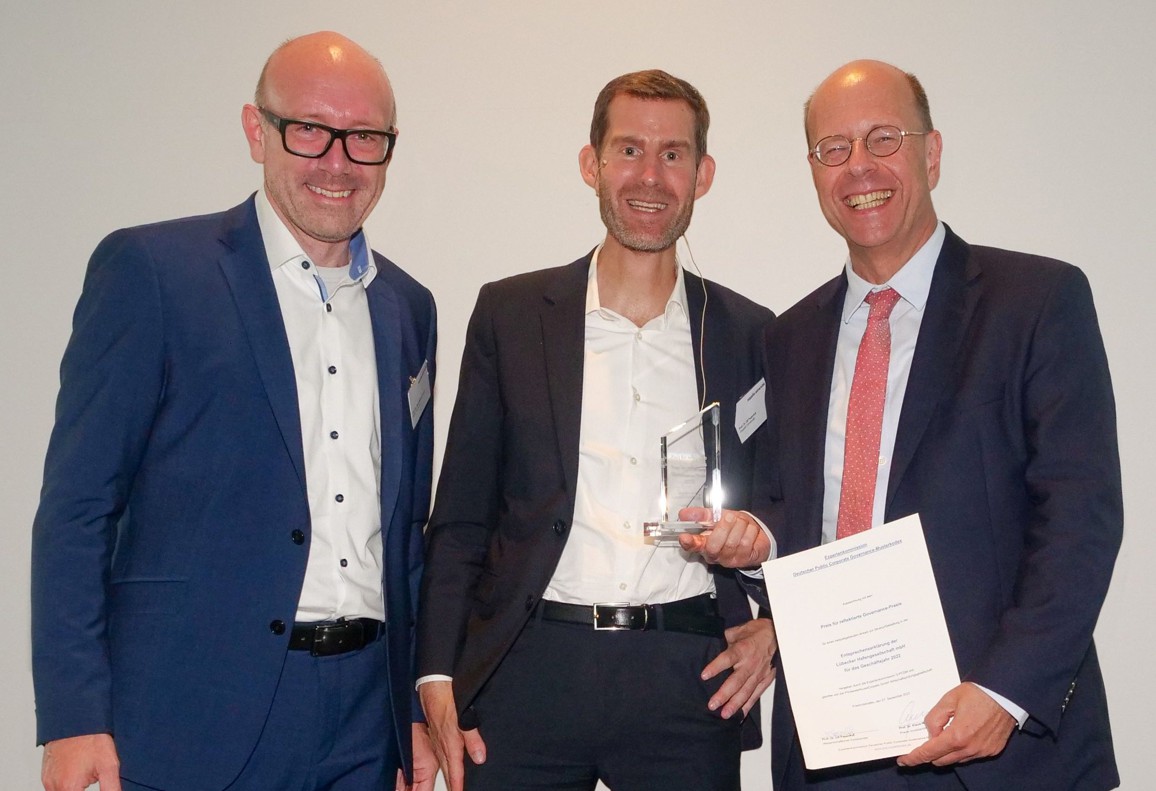 (Lübeck/Friedrichshafen) „Die LHG lebt vom Vertrauen der Stadt Lübeck, die alle Anteile an der Gesellschaft hält“, erklärt Geschäftsführer Prof. Dr. Sebastian Jürgens, der die Auszeichnung entgegennahm. „Dass uns die Zeppelin-Universität auf wissenschaftlicher Basis eine vorbildliche Organisationsführung bescheinigt, freut mich sehr und zeigt unserem Eigentümer, wie verantwortungsvoll wir mit diesem Vertrauen umgehen.“ Zudem dokumentiere die Auszeichnung die effiziente Zusammenarbeit zwischen der Stadt und der LHG.