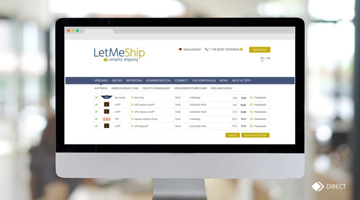 Die Multi-Carrier-Versandsoftware LetMeShip bietet einen einzigartigen Funktionsumfang, um dezentrale Versandprozesse zu harmonisieren, Kosten zu senken und Zeit zu sparen. Versandabwicklung direkt über die Web-Applikation (DIRECT) oder die Webservice-API (CONNECT) zur Integration in eine vorhandene IT-Struktur. Die LetMeShip Versandlösung bietet die flexible Lösung für Ihre Ansprüche.