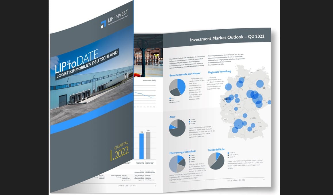 LIP Invest, führender Anbieter von Immobilien-Spezialfonds für institutionelle Investoren in der Assetklasse Logistikimmobilien Deutschland, veröffentlicht im Rahmen seines quartalsweise erscheinenden Marktberichts „LIP UP TO DATE – Logistikimmobilien Deutschland“ aktuelle Entwicklungen der stark nachgefragten Assetklasse Logistikimmobilien. Neben einem Rückblick auf das erste Quartal 2022 gibt der Bericht auch einen Ausblick auf die Entwicklung des Investmentmarktes für das 2. Quartal 2022.