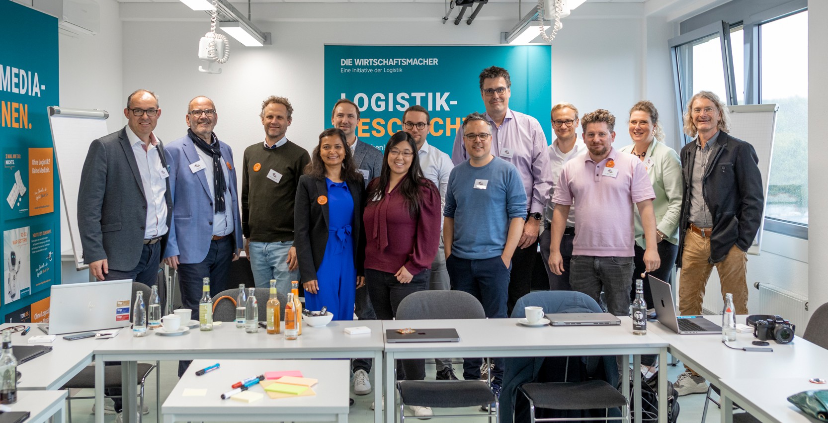 Foto: © Die Wirtschaftsmacher / Bildlegende (v.l.n.r.): Prof. Dr. Peter Holm (Provadis Hochschule), Uwe Berndt (Die Wirtschaftsmacher), Prof. Dr. Sebastian Herr (Hochschule Worms), Nisha Pillay (DHL Freight), Prof. Dr. Christian Menden (Technische Hochschule Würzburg-Schweinfurt), Jieying Luu (TH Köln), Dr.-Ing. Christopher Reining (Fraunhofer-Institut für Materialfluss und Logistik IML), Frederic Markus (Zeitbild), Prof. Dr. Dirk Bruckmann (Hochschule Rhein-Waal), Prof. Dr. Nils Finger (CBS International Business School), Dr. Daniel Bambach (Die Wirtschaftsmacher), Miriam Grieble (CBS International Business School), Jens Tosse
