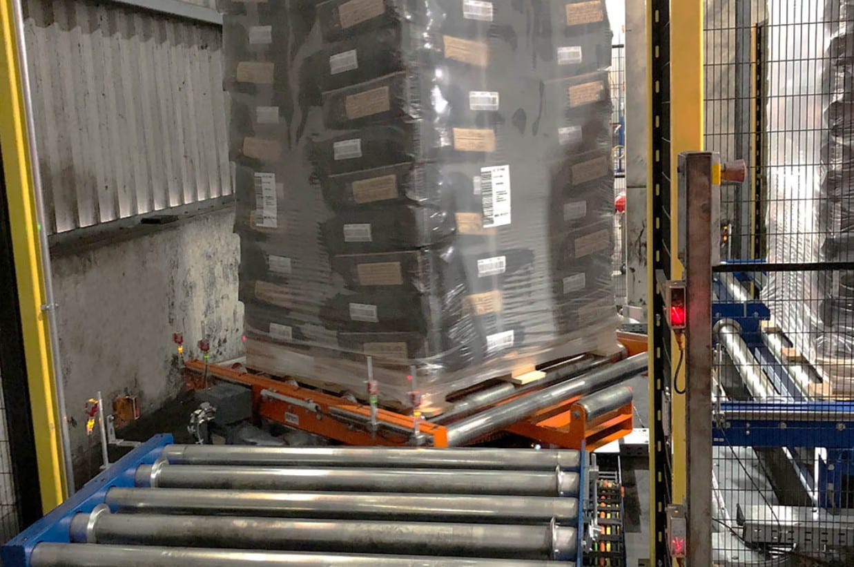 Um größtmögliche Pufferkapazität zu gewährleisten und Schwankungen oder Störungen abzufangen, ist die gesamte Förderstrecke zum Pulken der Paletten ausgelegt. Auf den 4,5 Meter langen Rollenförderer-Elementen bilden 3 Paletten einen Pulk mit einer maximalen Gesamtlast von 4,5 Tonnen.