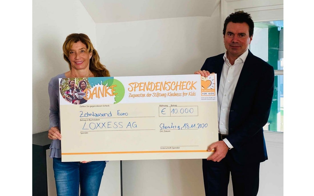 Die Loxxess AG bedachte die "Kidness for Kids", eine Stiftung für Kinder mit Seltenen Erkrankungen, mit einer Spende über 10'000 Euro. Dr. Claus Amberger von Loxxess überreichte den Check an Dr. Anja Frankenberger, Geschäftsführende Vorständin der Stiftung "Kindness for Kids".