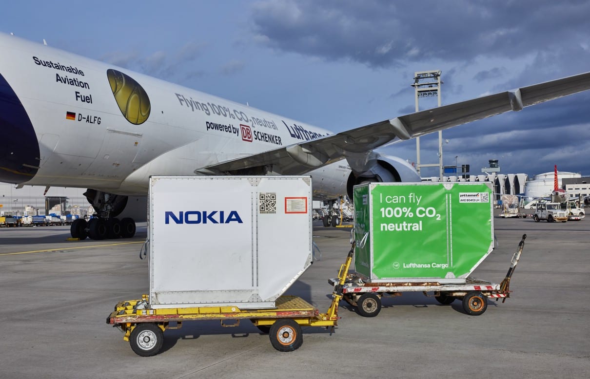 In den kommenden fünf Monaten wird Nokia das CO2-neutrale Flugangebot nutzen, um wöchentlich 10 Tonnen technische Ausrüstung zum Aufbau von Kommunikationsnetzwerken zu befördern. Durch den Einkauf von SAF gelingt es, die CO2-Emissionen der Gesamtökobilanz zu 100% zu vermeiden, ohne dass eine Kompensation erfolgt. Die Tür-zu-Tür-Vereinbarung zwischen DB Schenker und Nokia umfasst auch den Landtransport der Waren von einer Produktionsstätte in Shanghai zum Flughafen sowie von Frankfurt nach Tilburg, Nokias europäischem Drehkreuz in den Niederlanden. Der Landweg wird mit dem Biokraftstoff HVO durchgeführt (hydriertes Pflanzenöl).