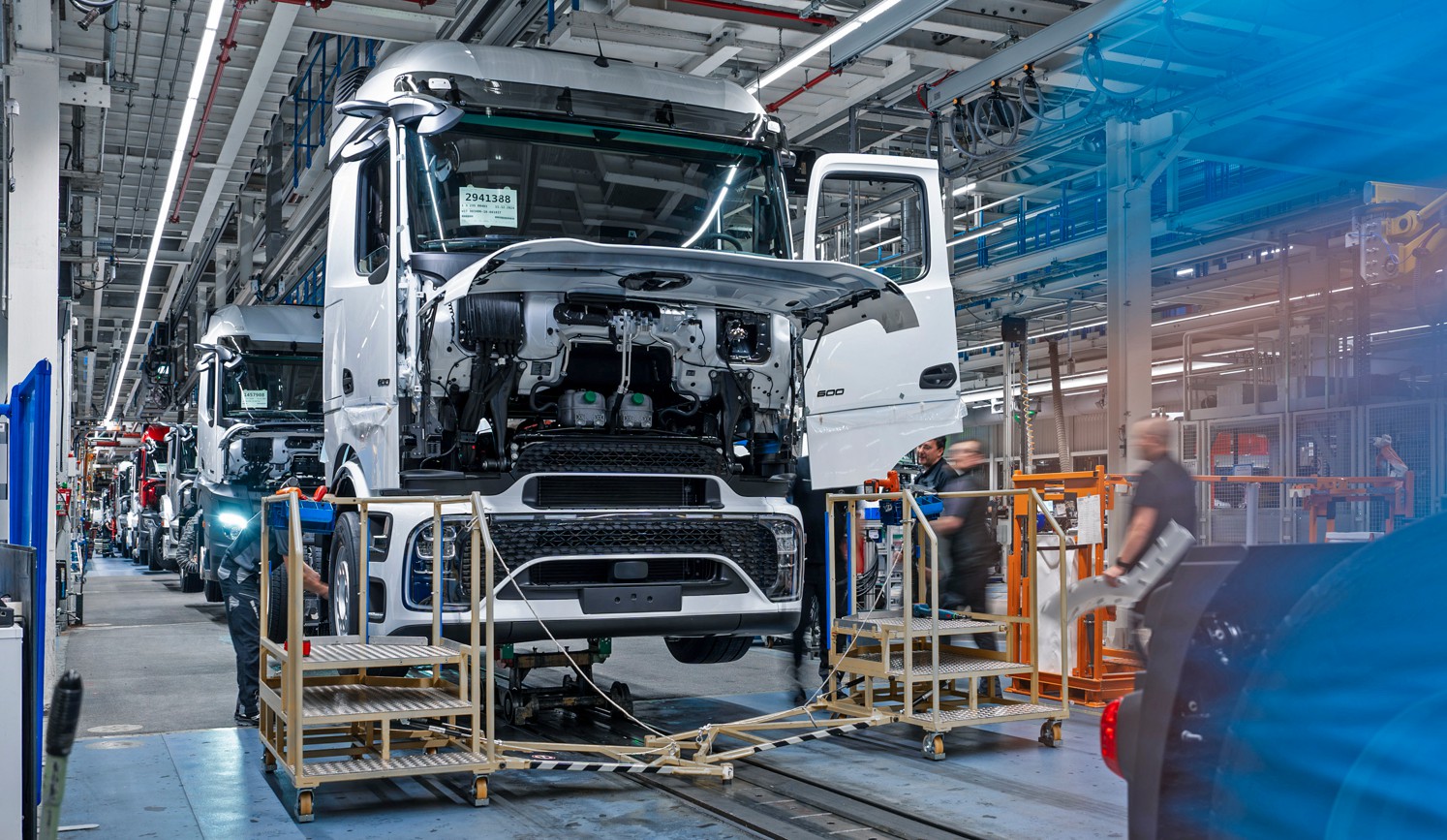 Der eActros 600 wird auf der bestehenden Montagelinie der Wörther A-Baureihen-Produktion gefertigt, parallel und flexibel neben den Lkw, die einen Dieselantrieb bekommen. In dieser Produktionshalle erhält er auch sämtliche elektrische Komponenten. Am Ende des Bands erfolgt die Inbetriebnahme des Gesamtsystems: Ab dann ist der Lkw fahrbereit und durchläuft schließlich den Finish-Prozess und die Endabnahme wie alle anderen Lkw auch.