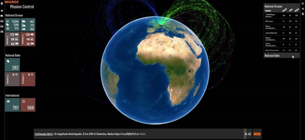 Dank der gemeinsam mit der Empa entwickelten Software «M Opex Tower» bildet die Migros neu ihre gesamten Warenströme in Echtzeit ab. Dadurch kann die Detailhändlerin ihre Logistik noch sicherer, effizienter und ökologischer gestalten. Das Tool ermöglicht der Migros ihre Transportlogistik so zu planen, dass sie ihre CO2-Emissionen im Strassenverkehr bis 2030 um 70% senken kann.