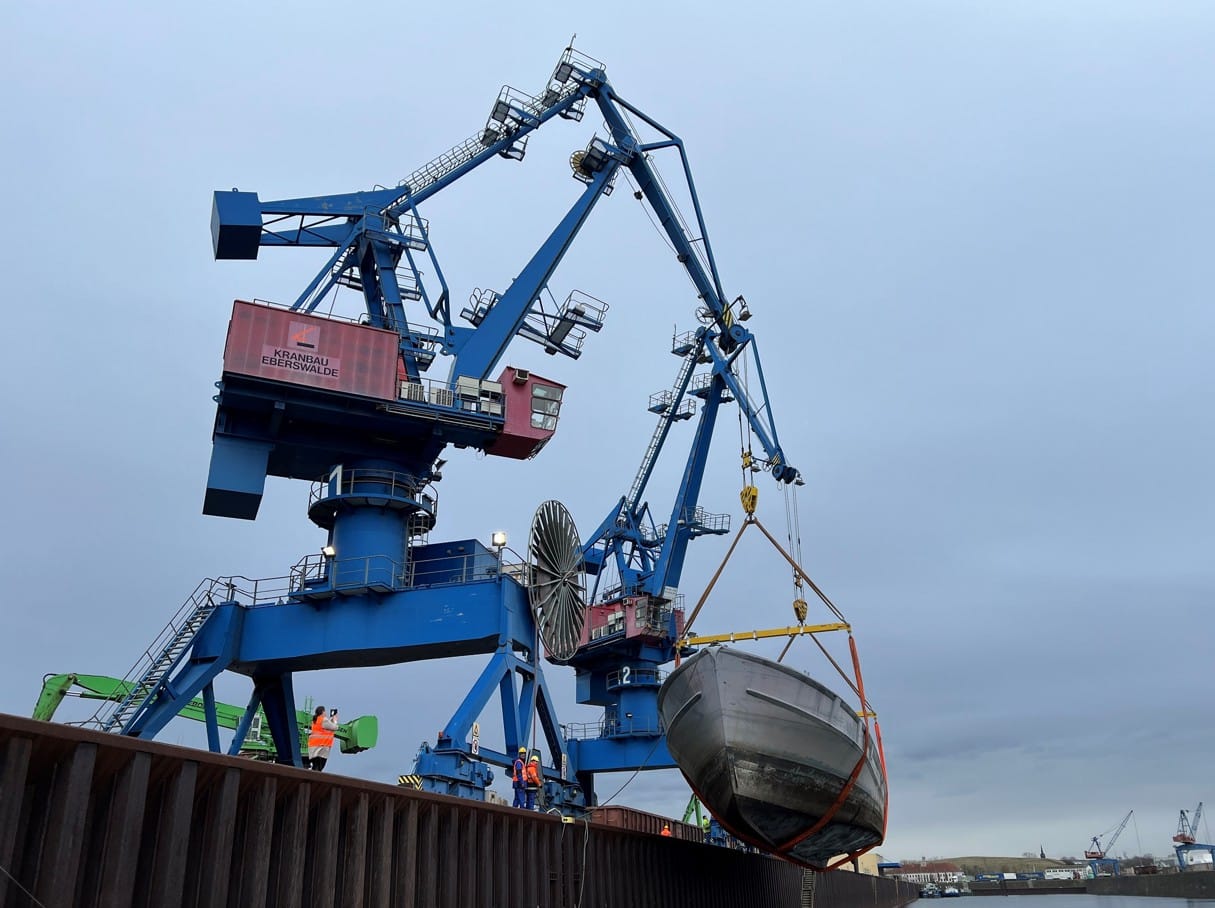(Dresden) Bereits seit einigen Wochen wurden umfangreiche Vorbereitungsmaßnahmen von der SBO in Zusammenarbeit mit der im Hafen ansässigen Firma Scholz Recycling getroffen, um die letzte Reise der „Atlantis“ vorzubereiten. Nachdem das Schiff bereits mehrere Havarien im Hafen erlitten hatte, war der finale Hub aus dem Hafenbecken alles andere als einfach. Die größte Herausforderung bestand darin, das unbekannte Gewicht des Schiffes einzuschätzen, damit die zwei Hafenkräne es im Tandem heben konnten. Hierzu gab es nur einen Versuch, der musste gelingen.