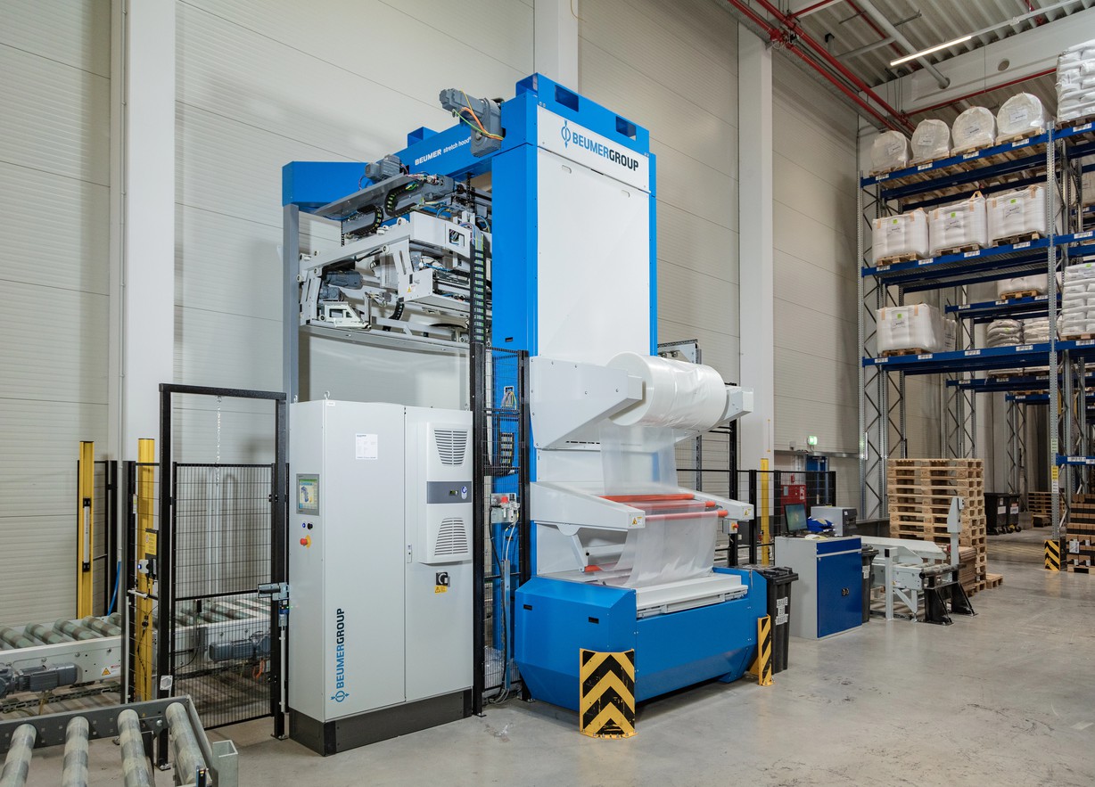 Paletten wirtschaftlich, sicher und automatisiert verpacken – mit der patentierten BEUMER stretch hood bietet die BEUMER Group dafür eine maßgeschneiderte Lösung. Fremdeingriffe, Beschädigungen oder andere Einwirkungen während der Lagerung und des Transports werden so verhindert. BEUMER passt jedes System individuell an die jeweilige Anwendung an, integriert es in die Fördertechnik des Kunden oder setzt es als eigenständige Lösung um.