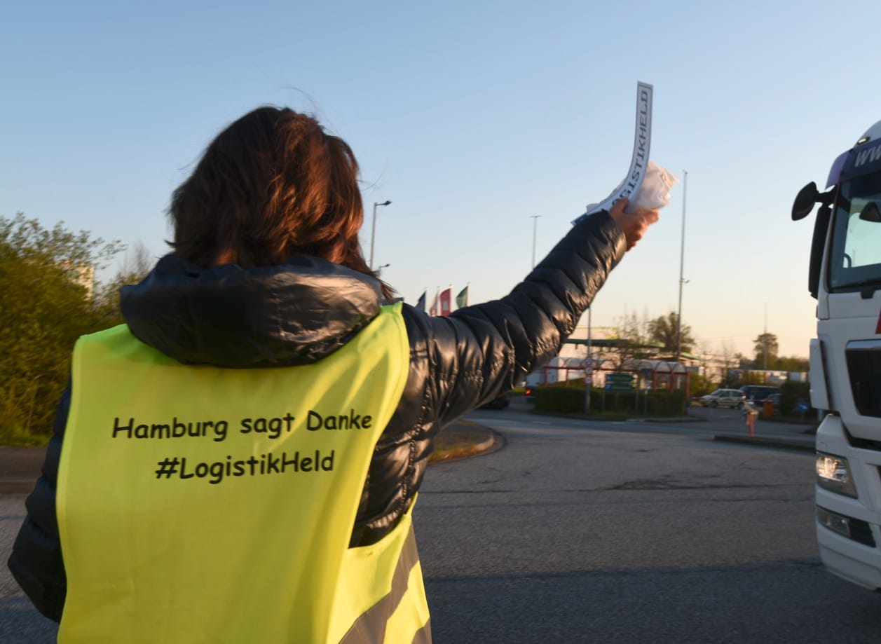 Deshalb werden am kommenden Donnerstag fleißige Helfer an der Halskestraße, am Containerterminal Eurogate, in Rade und anderen Orten Franzbrötchen als kleines Dankeschön für ihren unermüdlichen Einsatz an die Berufskraftfahrer verteilen. Viele Unternehmen versorgen ihre Fahrer auch direkt an ihren Standorten. Die Fahrer erhalten außerdem eine Dankeskarte verbunden mit der Bitte, damit ein Selfie zu machen und dieses unter dem Hashtag #LogistikHeld bzw. #LogistikHeldin bei Facebook oder Instagram hochzuladen. Ziel der Aktion ist es, den „Logistikhelden“ ein Gesicht zu geben und ihre Arbeit zu würdigen. Darüber hinaus soll auf diese Weise für Nachwuchs geworben werden, an dem es bei den Berufskraftfahrern trotz großem Bedarf seit Jahren erheblich mangelt. Mit der Aktion soll zudem das Bewusstsein für die wichtige Arbeit der Kraftfahrer auch in der breiten Öffentlichkeit geschärft und für mehr Rücksichtnahme aller Verkehrsteilnehmer untereinander geworben werden.