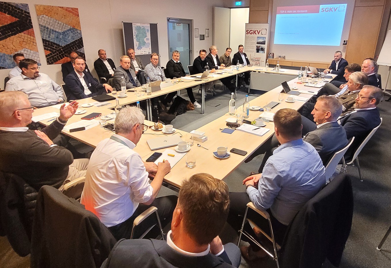 Die Mitgliederversammlung bedankte sich bei der Geschäftsstelle, dem Vorstand und dem Beirat für die bisher geleistete Arbeit und die Bereitschaft, sich weiterhin für den Kombinierten Verkehr (KV) einzusetzen. Der geschäftsführende Vorstand Clemens Bochynek skizzierte für die fünf Handlungsfelder der SGKV (Forschung, Politikberatung + Gremienarbeit, Publikationen, Veranstaltungen und Wissensvermittlung) die Themenschwerpunkte für die nächste Zeit (EU-Richtlinie zum KV, Förderung des KV mit Bundesmitteln, Stärkung des KV durch Argumente und Wissensvermittlung, Aufbau einer Intermodal Academy, ein interaktives Statistik Dashboard und die Wiederaufnahme und Etablierung der Arbeitsgruppen Terminals“ und Aus- und Weiterbildung“).