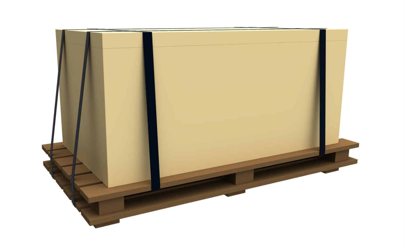 Bei der auf dem Stand ausgestellten Variante der KZV-321 handelt es sich um eine Variante der bewährten Mosca Palettenumreifungsmaschine, ausgestattet mit zwei Seitenaggregaten, einem offenen Bandrahmen und 6 verfahrbaren Zungen auf drei unterschiedlichen Höhen. Dadurch können Anwender verschieden hohe Einzelpaletten sowie übereinander gestapelte Paletten flexibel umreifen – bisher ließen sich die unterschiedlichen Umreifungsbilder für einzelne und gestapelte Paletten nur durch zwei unterschiedliche Maschinen abbilden. Im virtuellen Anwendungsbeispiel transportiert das Fahrerlose Transportsystem abwechselnd einzelne oder zwei aufeinander gestapelte Paletten in die Maschine. Daraufhin schließen die Zungen auf der jeweils passenden Höhe den Bandrahmen und die KVZ-321 umreift das Packstück formschlüssig und sicher. Werden statt einer einzelnen Palette zwei gestapelte Paletten in der Maschine platziert, so schafft die Umreifung einen Verbund zwischen beiden. Dafür fahren die Zungen der KVZ-321 jeweils durch die Laufhölzer der Paletten. So liegt das Umreifungsband nicht direkt am eigentlichen Produkt und Anwender können eine höhere Bandspannung nutzen, ohne sich Gedanken um eine Beschädigung des Produkts machen zu müssen.
