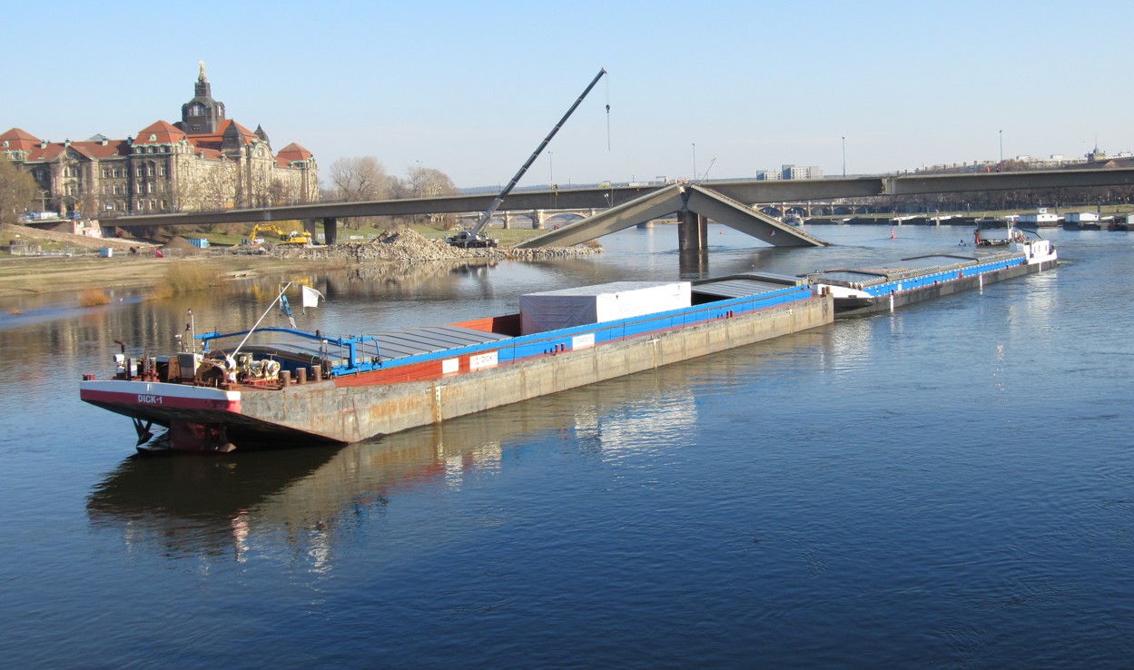 (Dresden) Nach dem Teileinsturz der Carolabrücke in Dresden am 11. September 2024 konnte kein Schiff mehr von und nach Tschechien die Elbe passieren. Ab heute ist die Durchfahrt für die Güterschifffahrt nach Voranmeldung des Transports beim Wasserstraßen- und Schifffahrtsamt wieder möglich.