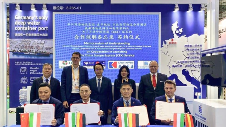 Das beabsichtige Vorhaben wurde nun auf der CIIE durch die Unterzeichnung eines Memorandum of Understanding (MOU) dokumentiert. Neben der Zhejiang Seaport Logistics Group und der Reederei KAWA Shipping haben auch die Unternehmen Central European Trade and Logistics Cooperation Zone (CECZ) und die Container Terminal Wilhelmshaven JadeWeserPort-Marketing (CTW JWP-M) die Absichtserklärung unterzeichnet.