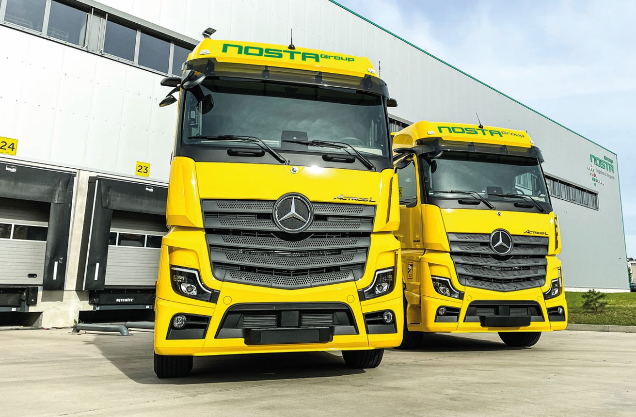 Die NOSTA Group hat die hauseigene Fuhrpark-Flotte komplett ausgetauscht. Insgesamt 34 neue Fahrzeuge der Baureihe Actros 5L von Mercedes-Benz sind ab sofort in ganz Europa für den Full-Service-Logistikdienstleister auf den Straßen unterwegs. Für die Unternehmensgruppe ist die Modernisierung des Fuhrparks ein weiterer Schritt hin zu mehr Effizienz und erhöhter Verkehrssicherheit.