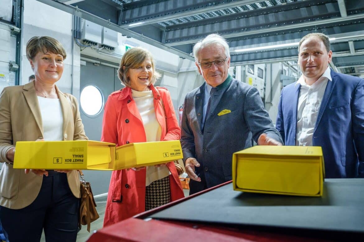 (Wien/Wolfurt) Aufgrund der stark steigenden Paketmengen baut die Österreichische Post AG ihre Logistikinfrastruktur aus, über 500 Millionen Euro fließen in den nächsten Jahren in den Ausbau von Logistikzentren und Postbasen. Ein wichtiger Meilenstein für Westösterreich wurde heute in Vorarlberg erreicht, wo die Post den Ausbau des Logistikzentrums in Wolfurt gemeinsam mit Dr. Barbara Schöbi-Fink, Landesstatthalterin Vorarlberg, Angelika Moosbrugger, Vizebürgermeisterin von Wolfurt, und DI Dr. Georg Pölzl, Generaldirektor der Österreichischen Post AG, feierlich eröffnet hat.