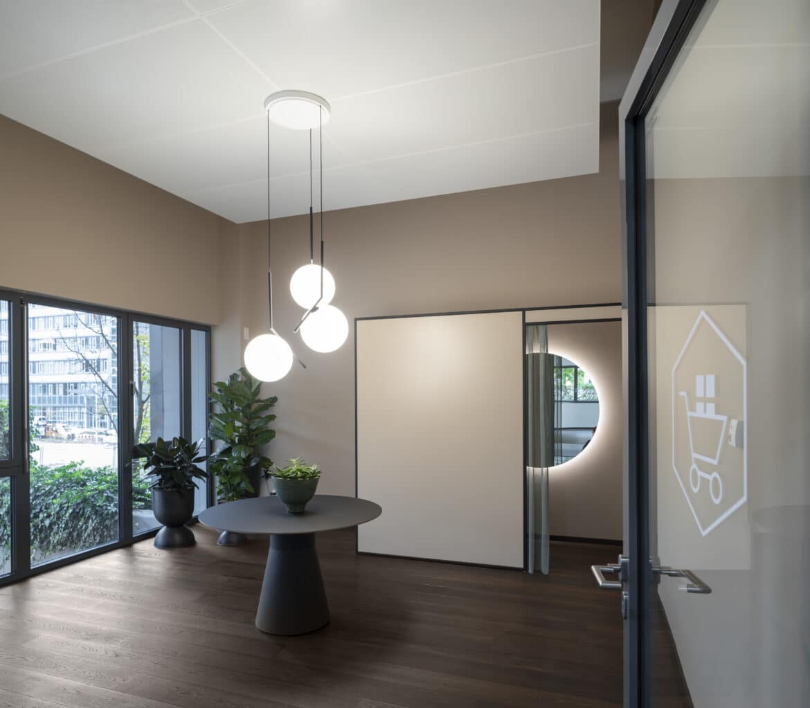 Hahn-Woehrle wollte diesen Service weiter optimieren und bat das Interior-Design-Team – die Innenarchitektin Marisa Dickau vom Büro vierdrei in Zusammenarbeit mit Werkkollektiv – den viastore pakadoo point in die Gesamtarchitektur zu integrieren. Entstanden ist ein Raum in minimalistischem Design mit klaren Linien und in naturnaher Farbgebung. „Als Gegenpol zur permanenten Verfügbarkeit und dem Konsumwahn, dem man im Alltag ausgesetzt ist, wollten wir bewusst einen Ort der Entschleunigung schaffen, dessen hochwertige Ausstattung unser Verantwortungsbewusstsein vermittelt“, betont Philipp Hahn-Woernle. Der pakadoo point erinnert ein wenig an eine hochwertige Boutique: Hier können die Mitarbeiter nicht nur Pakete empfangen und retournieren, sondern auch bestellte Kleidung direkt in der integrierten Umkleidekabine anprobieren. Ein zusätzlicher Stauraum bietet Platz für Versandmaterial. „Mit pakadoo haben wir einen offenen und flexiblen Projektpartner gefunden, der uns geduldig dabei unterstützt hat, diese individuelle Kundenlösung zu erarbeiten“, erzählt Marisa Dickau.
