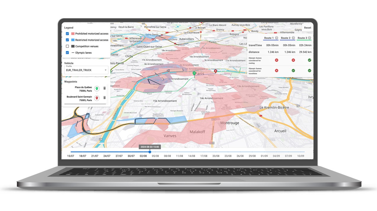 PTV Logistics gibt die Verfügbarkeit seines PTV OptiFlow-Pakets sowie eines kostenlosen Tools zur Berechnung und Simulation von Routen bekannt, das Lieferunternehmen bei der Planung ihrer Auslieferungen in Paris und Umgebung während der Olympischen Spiele 2024 unterstützt. Über die PTV Developer Plattform ermöglicht dieses Tool die Berechnung und dynamische Anpassung optimaler Lieferstrecken unter Berücksichtigung der jeweils tagesaktuellen Verkehrsbeschränkungen.
