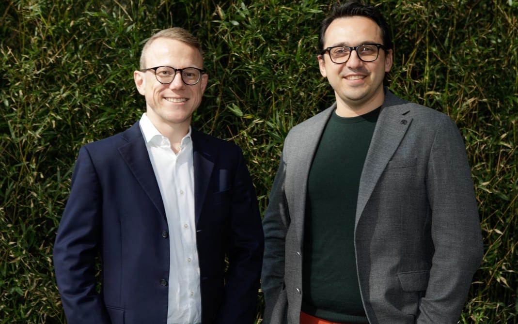Foto: © Rail-Flow / Bildlegende: Die Rail-Flow-Gründer Dominik Fürste (links) und Osman Akdemir nach der Beurkundung. Abdruck honorarfrei.